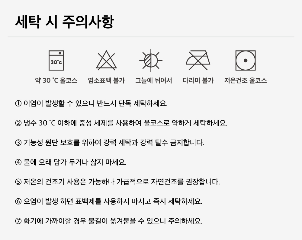 세탁방법 및 취급시 주의사항